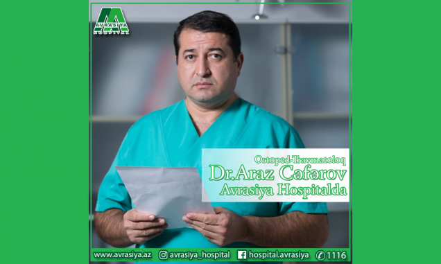 Tanınmış ortoped-travmatoloq Dr. Araz Cəfərov artıq Avrasiya Hospitalda fəaliyyət göstərəcək və öz pasientlərini qəbul edəcək.
